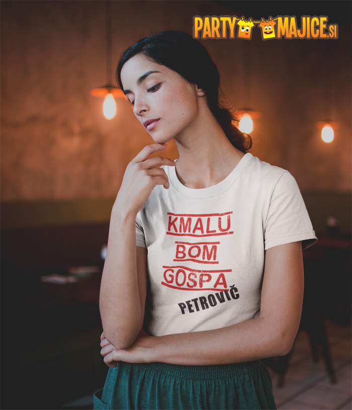 Majica za nevesto: Kmalu bom gospa. Priimek po izbiri.